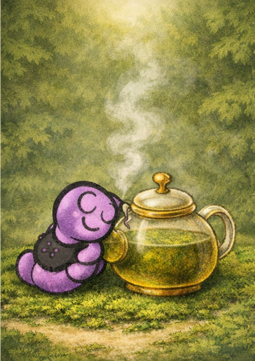 Er setzte sich neben die Teekanne, füllte sie mit Hanftee,